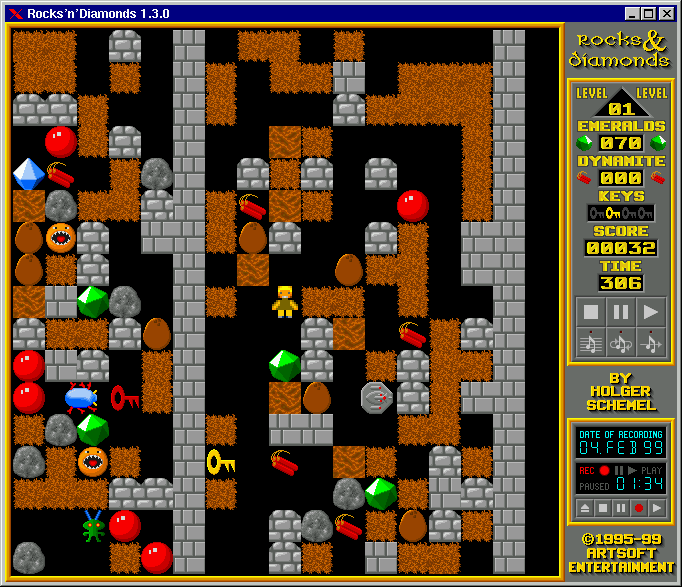 Screenshots of Rocks'n'Diamonds 1.3.0 (small sized graphics)